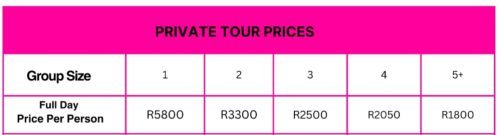 Kindly, email us on info@florafricana.co.za to book your tour or contact us for a quote in case of more than 5 people.