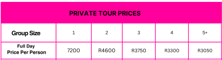 Kindly, email us at info@florafricana.co.za to book your tour or contact us for a quote in case of more than 5 people.