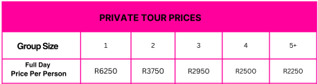 Kindly, email us at info@florafricana.co.za to book your tour or contact us for a quote for more than 5 people